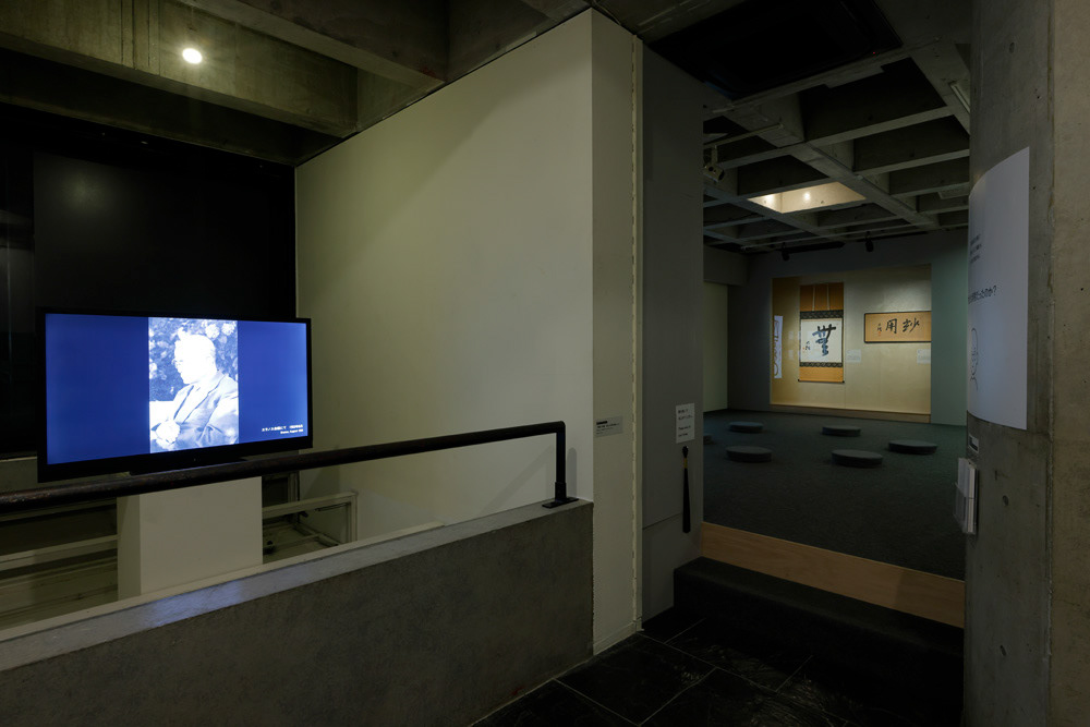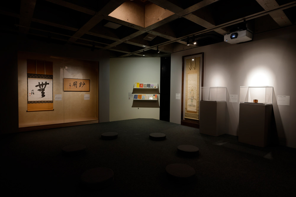 The third floor introduces D.T. Suzuki’s network and intersections with people around him such as Kitaro Nishida and Muneyoshi Yanagi. Surrounded by furniture-like casework containing calligraphy works and reference materials, the densely furnished room appears like an archive. With the audio of their trilogy, the space is designed to imagine a salon or a study room where they would have discussed and interacted with each other in those days.